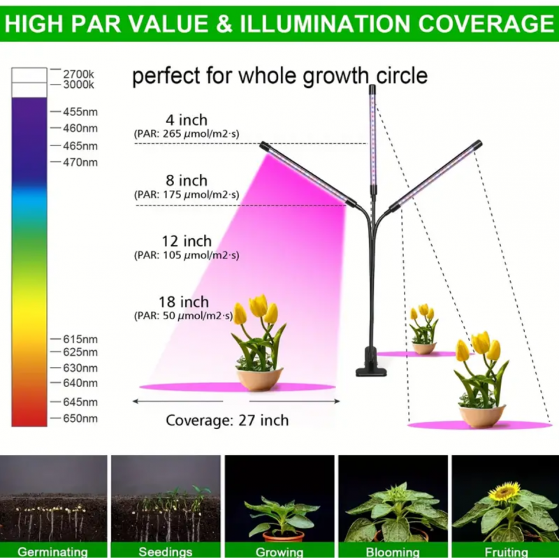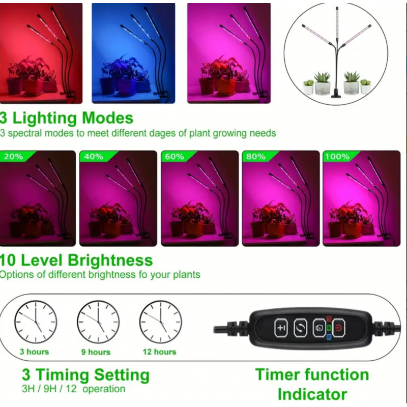 1pc Grow Light, 40W Grow Lights For Indoor Plants, 10 Dimmable Level Full Spectrum Plant Light, With 3/9/12H Timer, Auto-Timing Turn/Off, Adjustable Gooseneck, 3 Switch Modes