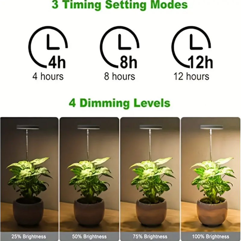 1pc, Aiwellkay Grow Lights For Indoor Plants ,Grow Healthy Indoor Plants USB Angel Ring LED Full Spectrum Plant Light , Diameter 3.5in/9cm,Height Adjustable 4 Dimmable Brightness, 4/8/12H On/Off Timer,Timed DimmingI ,Ideal For Small Plants