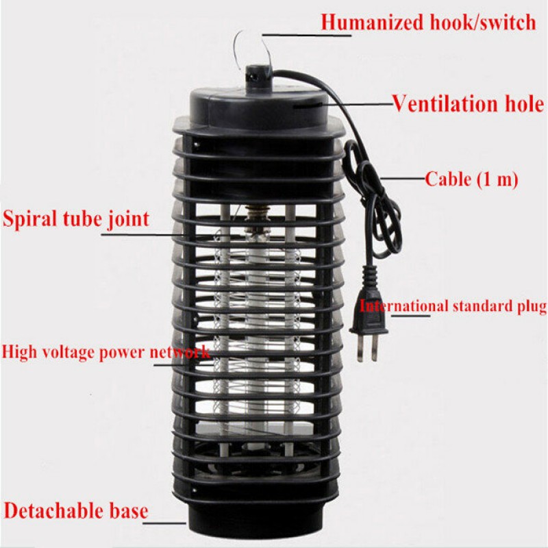This electronic bug zapper utilizes a high frequency blue light to lure flying insects during the day or night to form a practical, efficient, hygienic and automatic electronic insect extermination system.