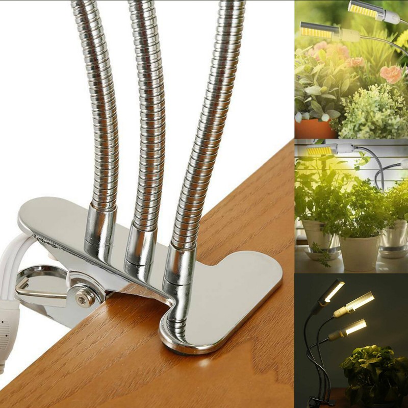 Strong Clip & Adjustable Gooseneck: The 3-head grow light has a strong clip that can be stably and arbitrarily clamped on anywhere,such as bedroom, living room,study, private garden.