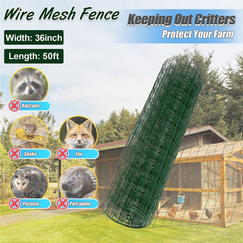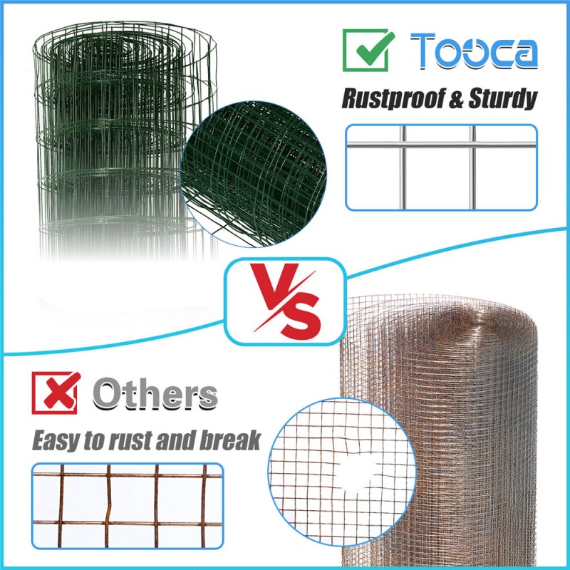 -STURDY&DURABLE: The hardware cloth is made from 16gauge welded wire with green vinyl coating to improve the corrosion resistance and strength of the wire mesh, furthermore, to ensure the service life of the chicken wire fence